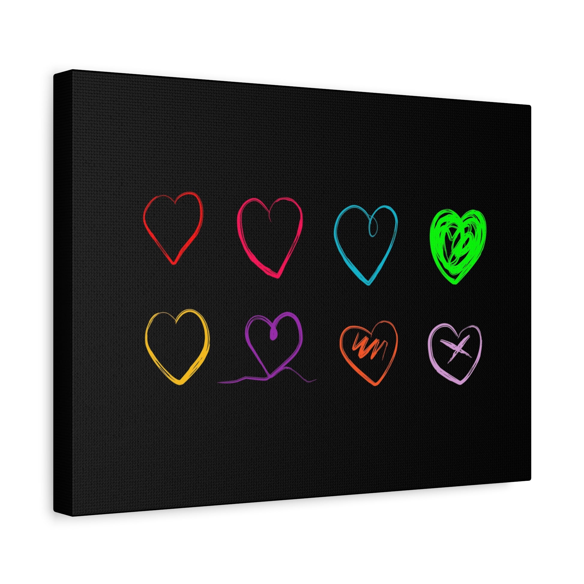 Neon Minimalist Hearts. 16x12 in. Canvas